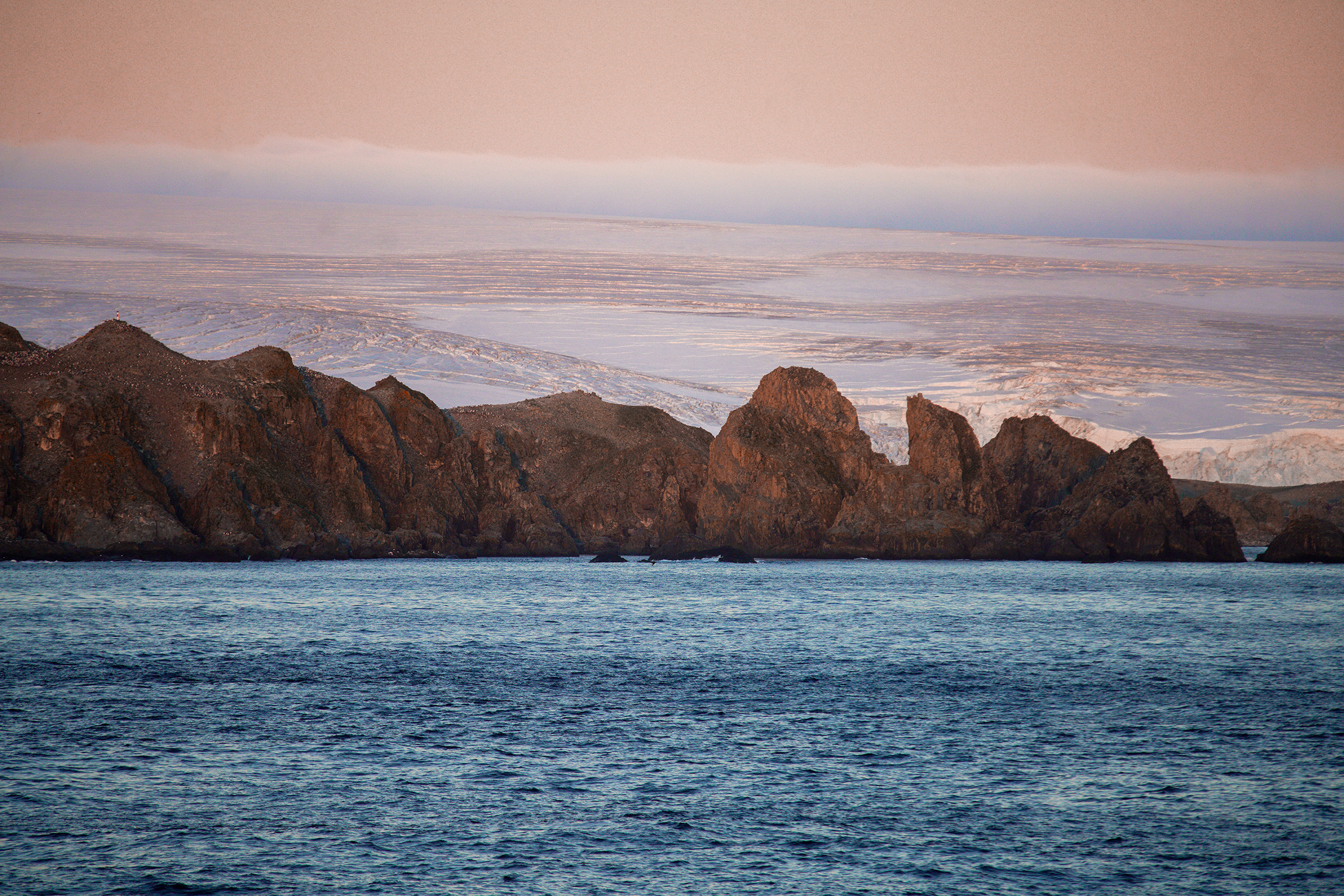But, after two days of sailing, we started to see land in the setting sun. Mountains and glaciers in the distance, welcoming us to the Antarctic Peninsula and the impending Antarctica Marathon. Just as we’d scheduled, on March 19th, we’d be setting foot on King George Island, ready to run the 42.2km in this otherworldly place