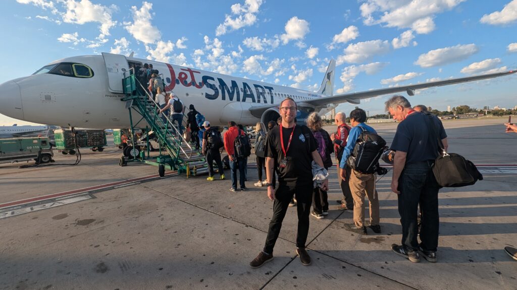 All things considered the morning of our departure went smoothly, we were up very early and since we were all still fairly new to each other, the conversations hovered mostly around running, races, and travels. We checked in our bags, mindful of weight restrictions, and headed to our chartered jet (perfectly adorned with a penguin on the back) and set off for the southern tip of South America.